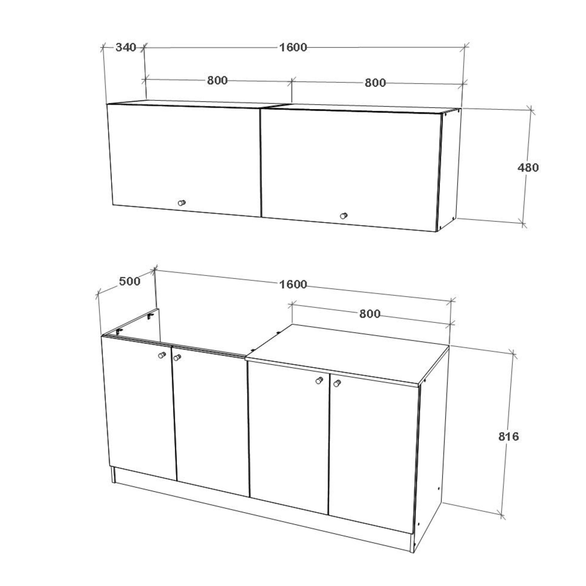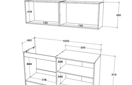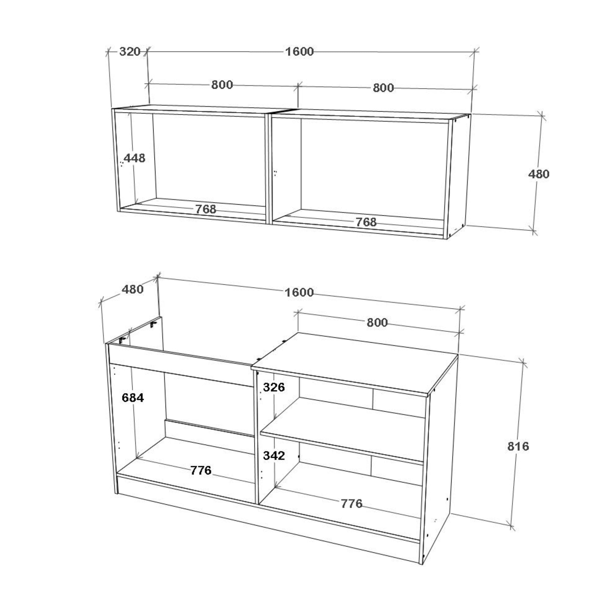 • Masca de chiuveta + corp cu o polita: L 160 x l 48 x H 82 cm