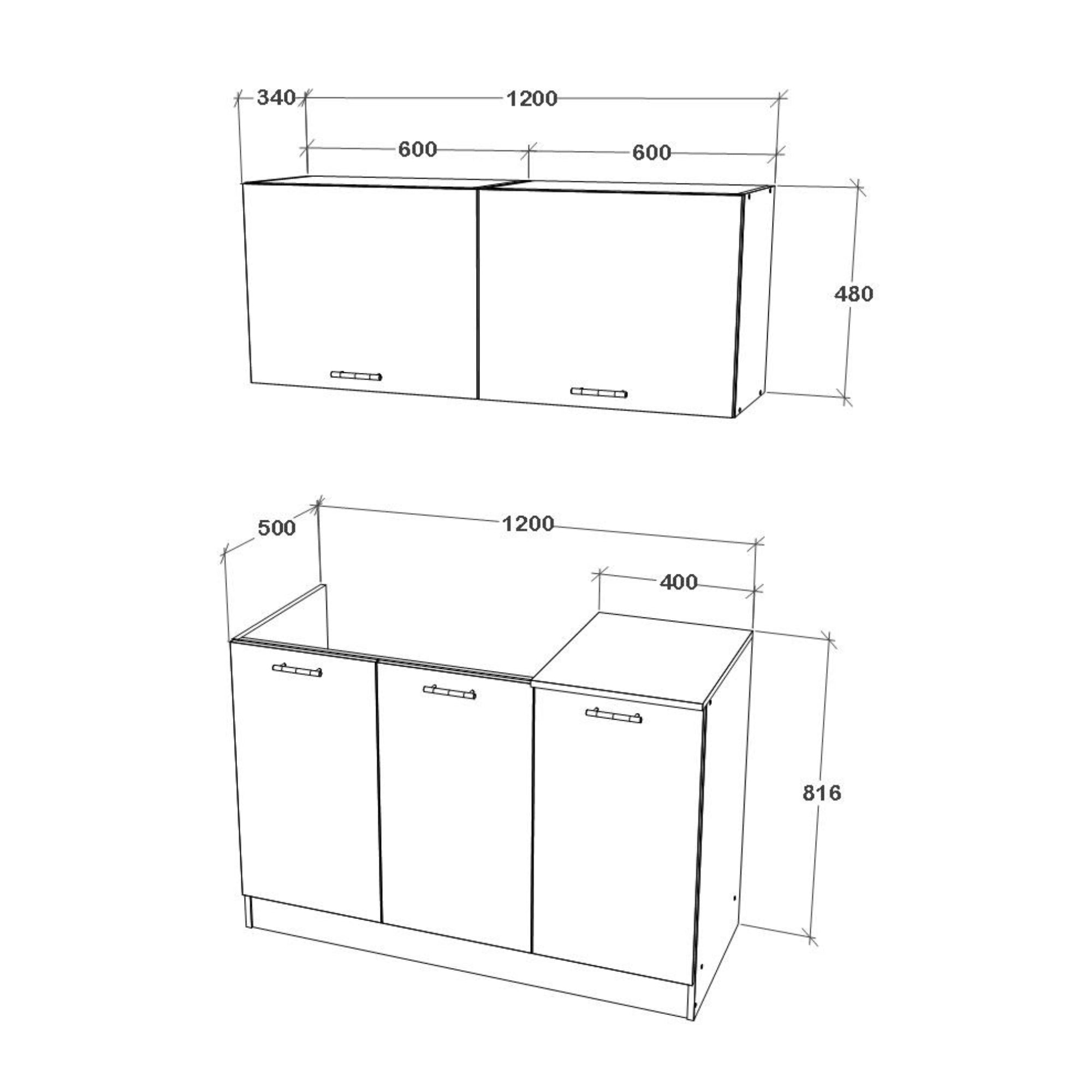 • Masca de chiuveta + corp cu o polita: L 120 x l 48 x H 82 cm