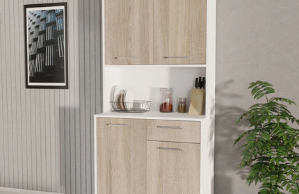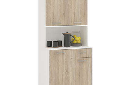 Bufetul de bucatarie Oma combina functionalitatea si eleganta intr-un design modern. Cu usile in nuanta de Stejar Sonoma si carcasa Alba, adauga un aspect contemporan oricarei bucatarii. Realizat din PAL Melaminat, carcasa Alba asigura o structura robusta, in timp ce usile Stejar Artisan confera un accent rafinat. Spatiul generos de depozitare este ideal pentru organizarea eficienta a veselei si a ustensilelor. Cu acest bufet, obtii nu doar functionalitate, ci si un element de design care isi va pastra farmecul de-a lungul timpului.