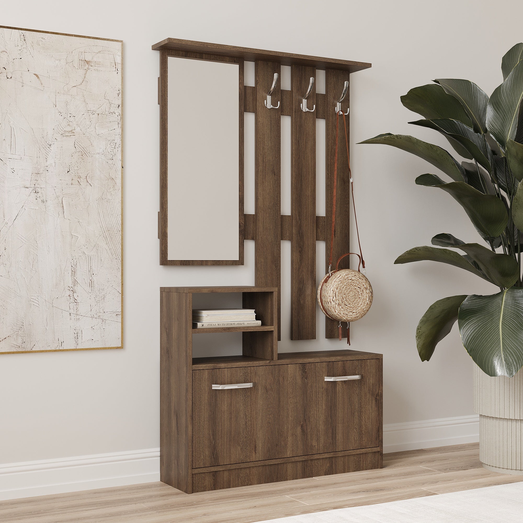 Profita de un hol organizat cu un Cuier Lyon Stejar Bronz