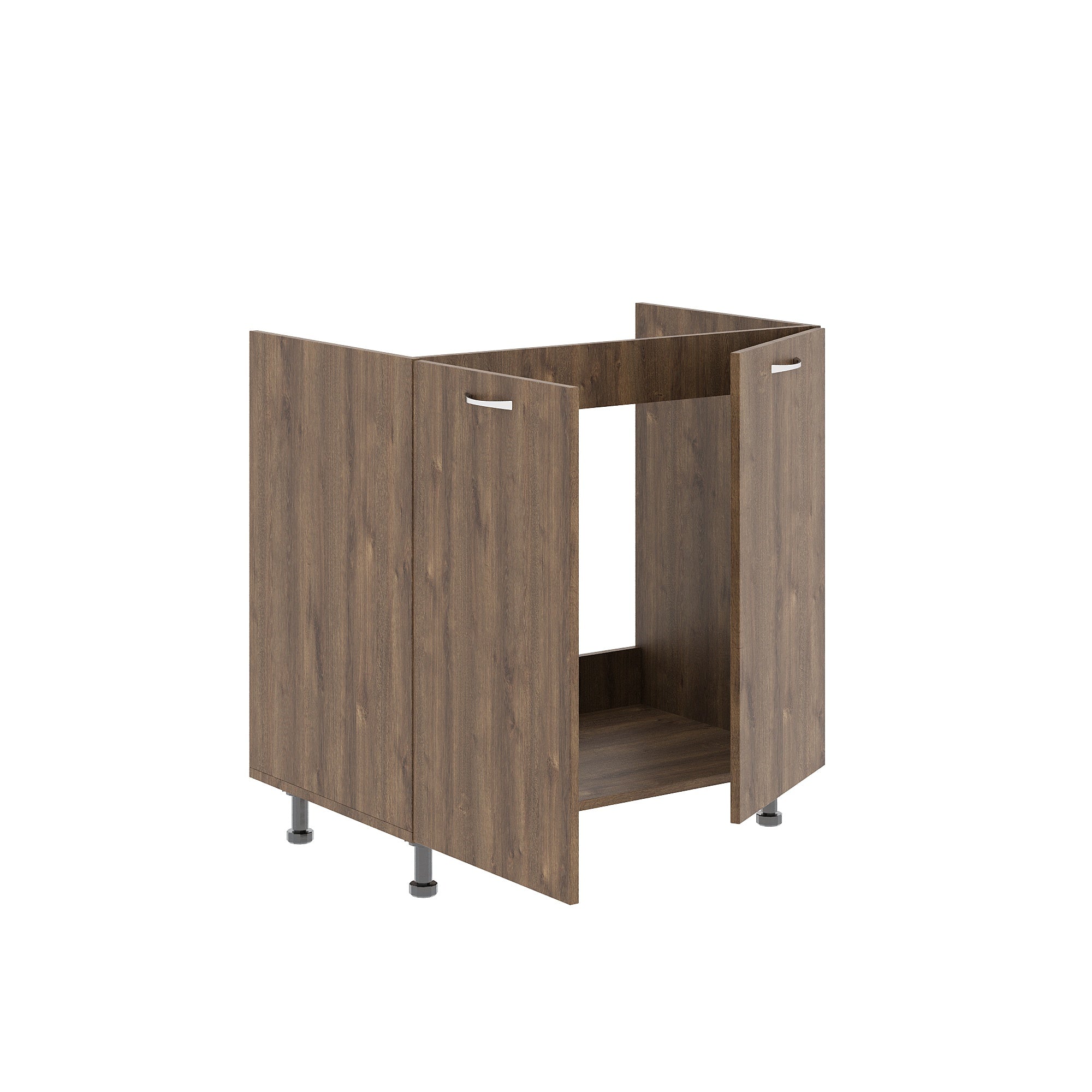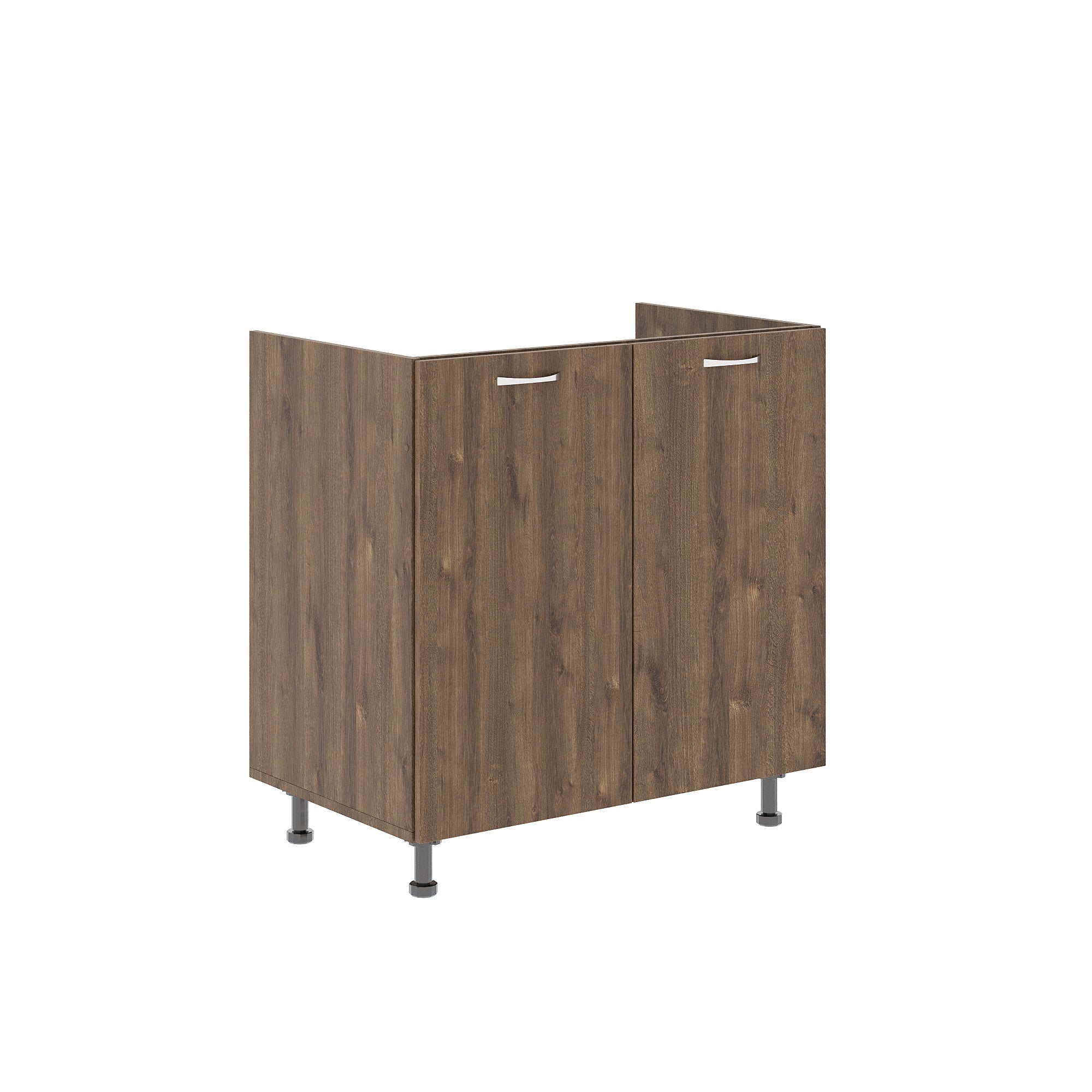 Aceasta masca este potrivita pentru o chiuveta cu dimensiunile de 80 x 50 cm. Masca de chiuveta cu doua usi este gandita pentru a facilita accesul la instalatia de sub chiuveta. Spatiul de sub chiuveta poate fi folosit si ca loc de depozitare pentru diverse lucruri. Spatiul este indeajuns de mare pentru a pastra produse sau obiecte de curatenie. Masca pentru chiuveta are o inaltime de 82 cm si nu vine instalata direct pe sol. Cele patru picioare cu care este prevazuta iti vor fi de folos pentru a ajunge cu mai multa usurinta sub masca de chiuveta.