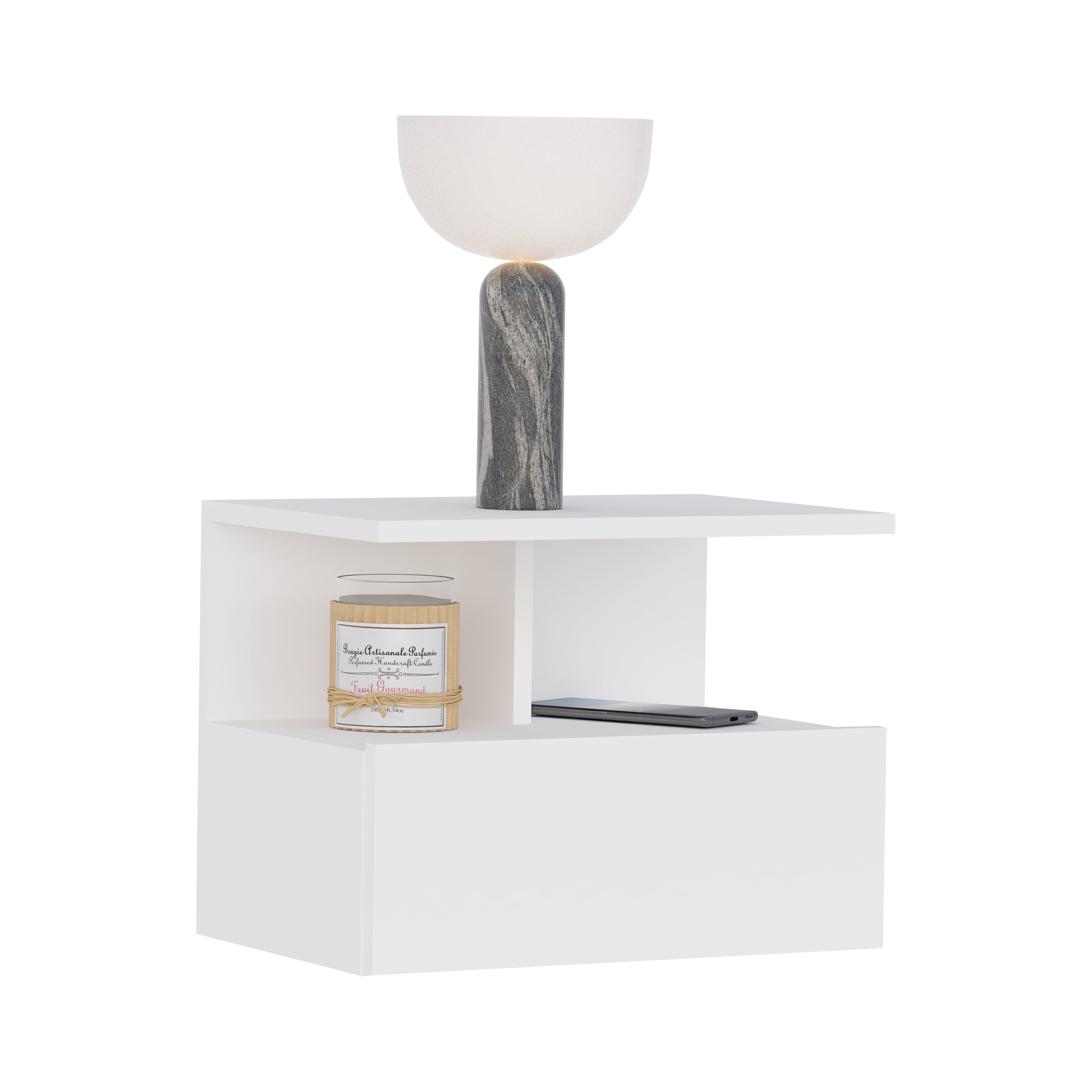 Completează-ți dormitorul cu noptiera Kabi, un element modern și funcțional ce adaugă eleganță spațiului prin finisajul complet alb. Cu o formă simplă și compactă, Kabi este ideală pentru spații mici sau pentru interioare aerisite, în care fiecare detaliu contează. Se montează pe perete, lăsând podeaua liberă și ușurând curățenia zilnică.