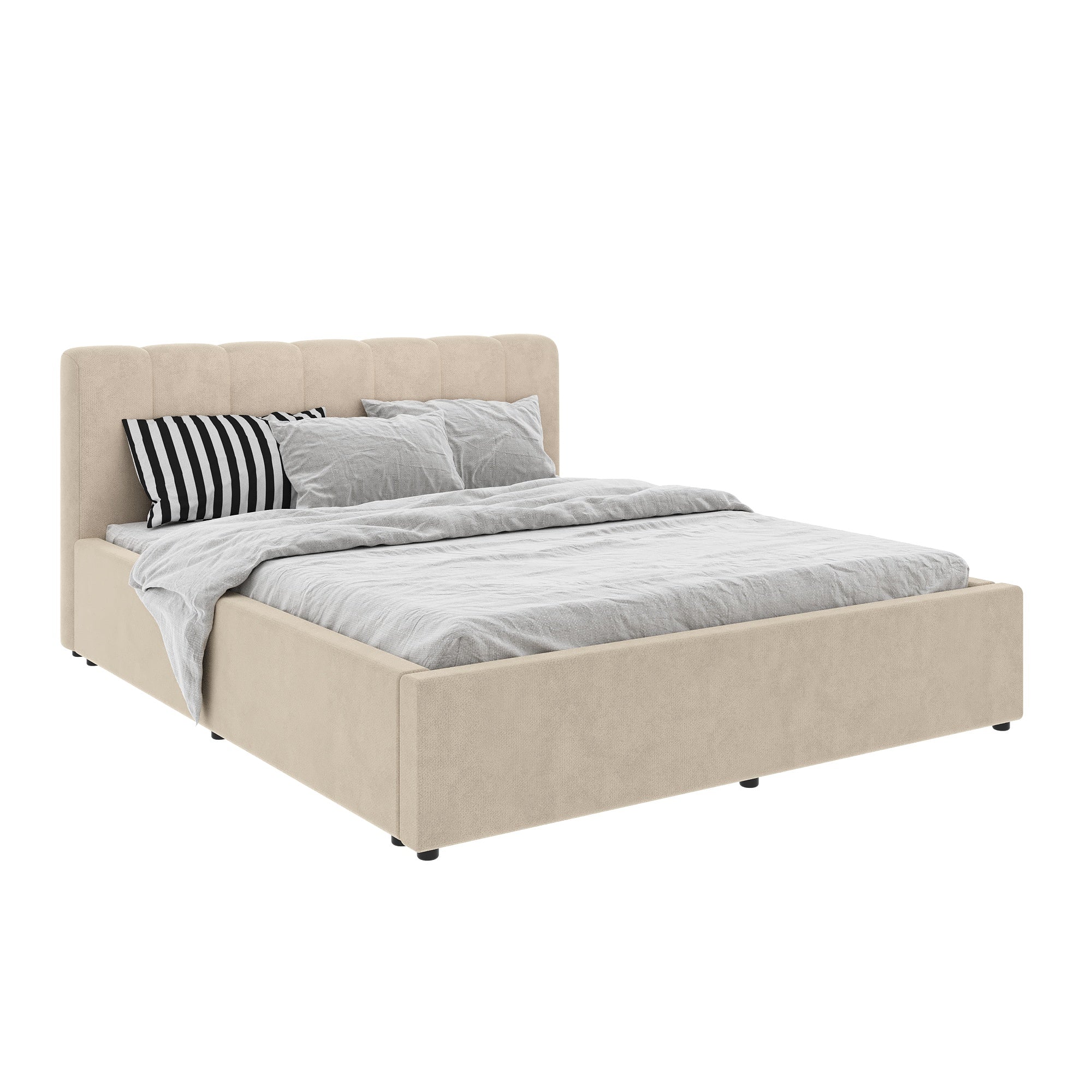 Patul Almo pentru doua persoane are o structura din PAL Melaminat si este tapitat cu stofa de culoare Crem. Proiectat de noi, acest model de Pat Almo ii ofera un cadru modern si mai mult confort casei tale, datorita designului cromatic bine ales.